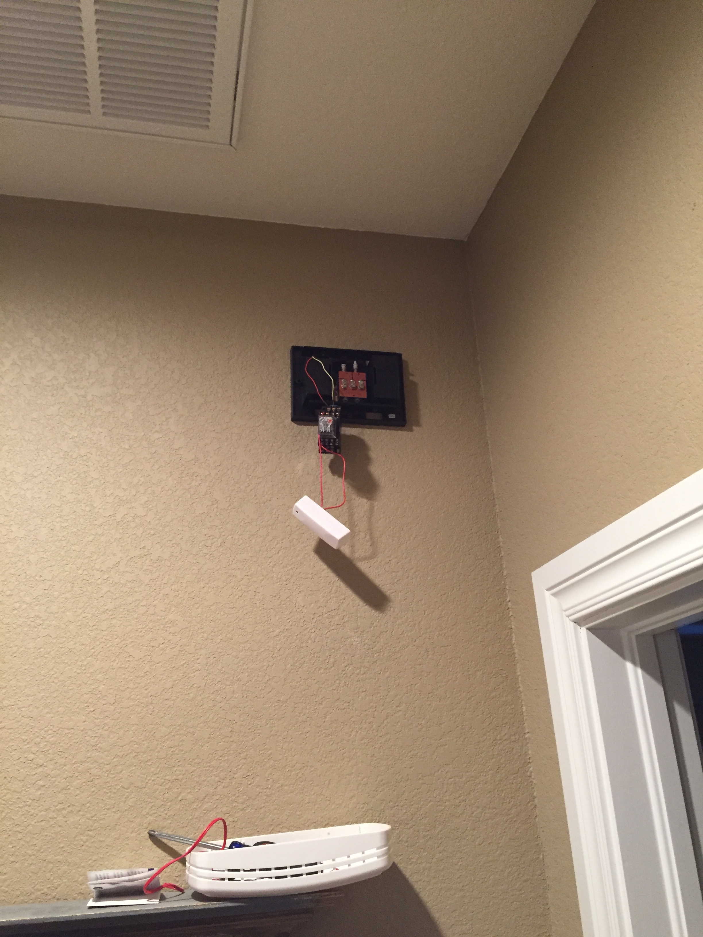 Here how I hooked mine up with a Aeon Labs Aeotec Z‑Wave Dry Contact Sensor, Gen5 ZW097. From the comments, I totally have this Dry Contact hooked up the wrong way, but it’s been working for over a month now without any issue.