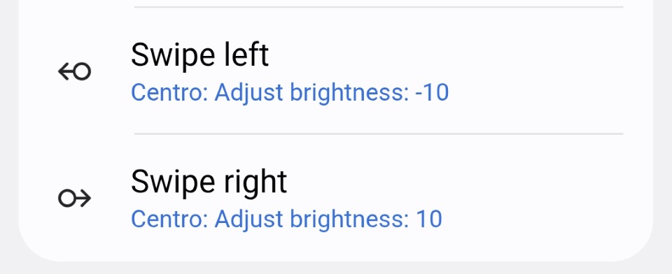 Full support for the wheel with Swipe left and Swipe right actions.- Multiple scrolling modes: trigger L/R multiple times while scrolling (useful for dimmer or colour steps) or single trigger when scrolling ends (useful for toggling).