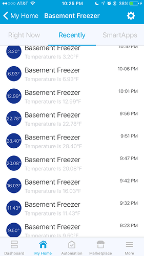 Hello, I recently connected the Fibaro FGK-101 with a probe in my freezer. For whatever reason, I get quite some temperature variations that I doubt are real. Does anyone have experienced a similar issue? I understand there could be some due to the auto defrost function of the freezer but it seems a lot and very quick (see attached screenshot). It might also be related due to the low temperature but I would not expect this picture. Thank you in advance! Cheers, Jens