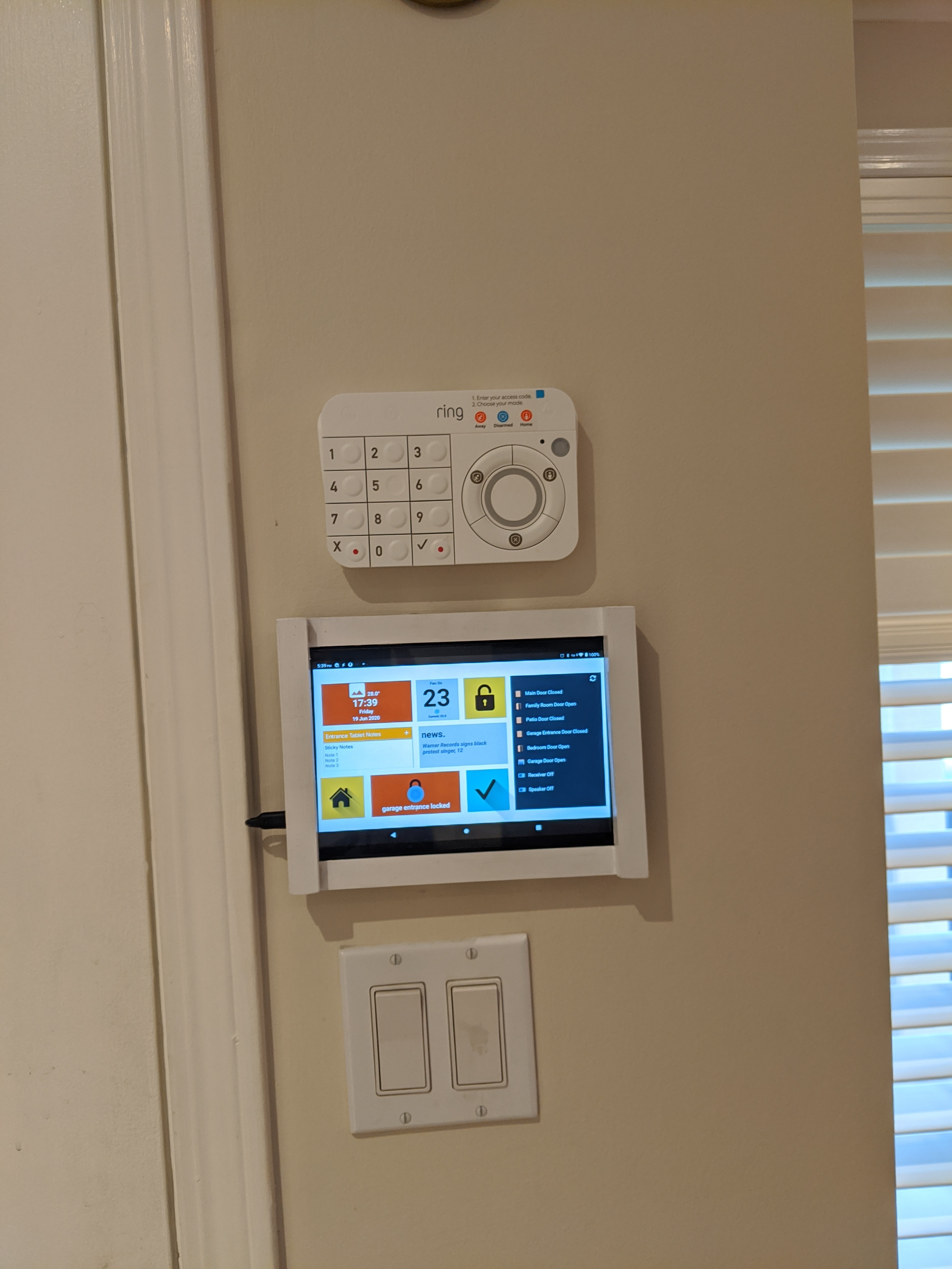 Just finished my own DIY frame and tablet mount for home control. It’s making use of tasker, sharptools and kwgt to display key information on the home page. For layout, I am using Total launcher with flattered theme. In addition, TinyCam Pro for viewing my IP cameras, News widget, Google Keep widget for notes, and Fotoo app for screensaver.