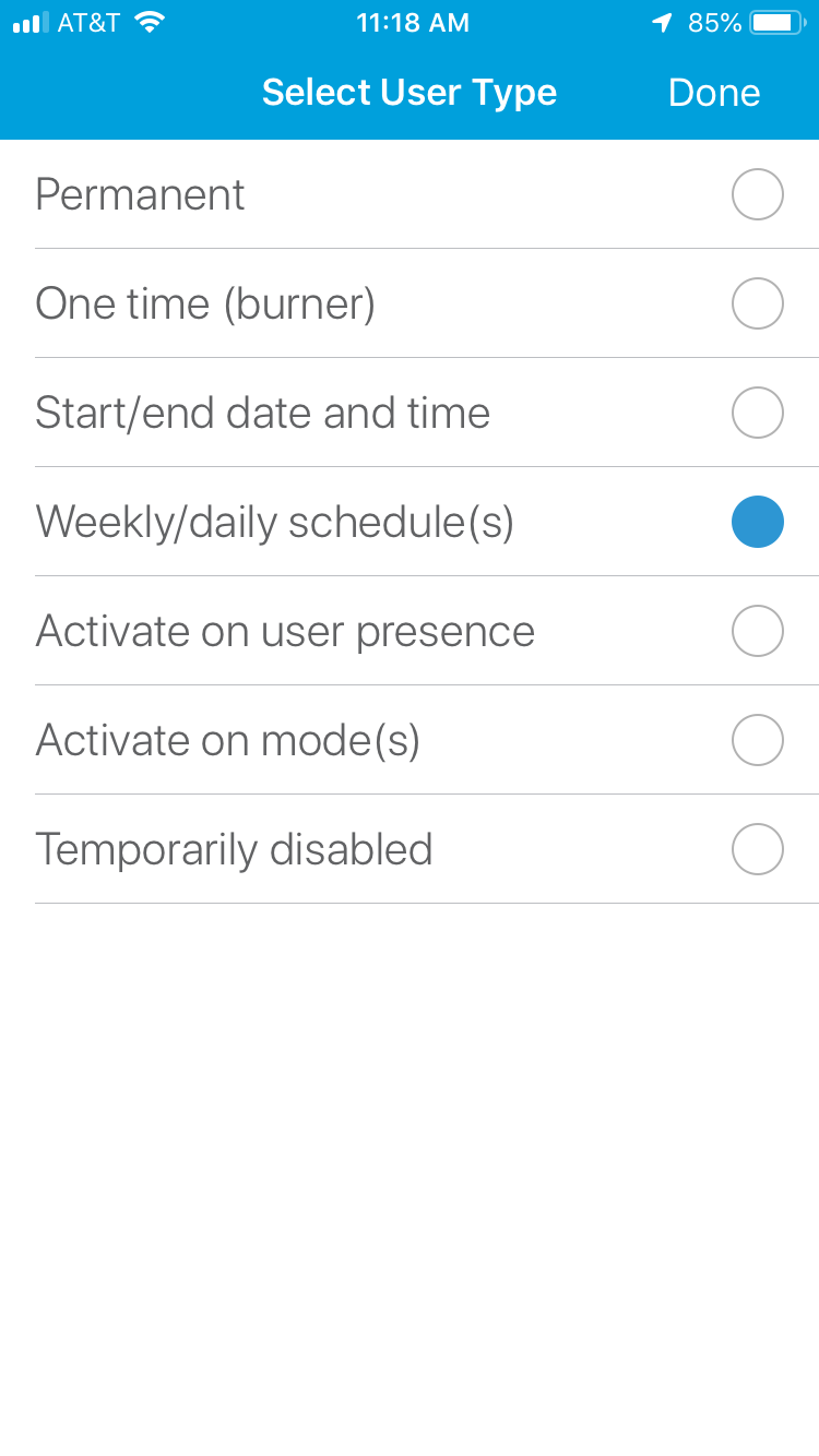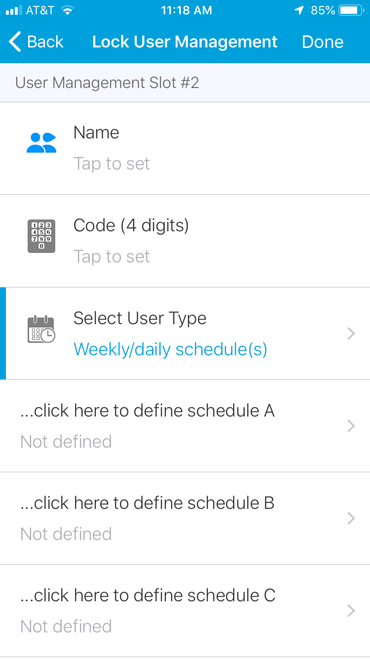 Tap on Select User Type and select Weekly/daily schedule(s) and then you’ll see the options to select up to 3 schedules for the user.