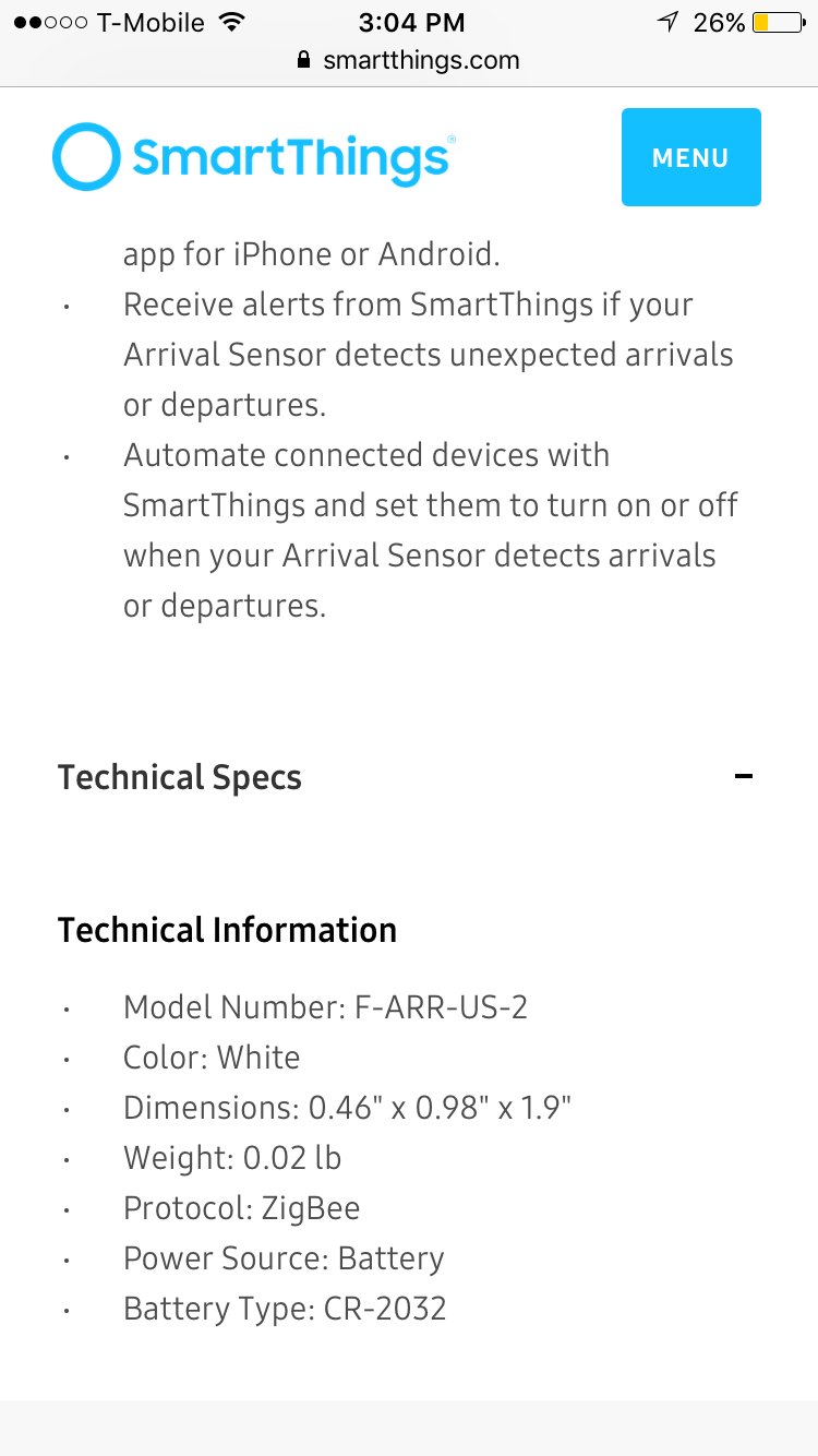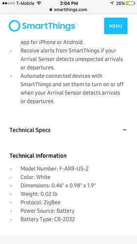 The official U.S. Smartthings products page doesn’t mention 2 year battery performance
