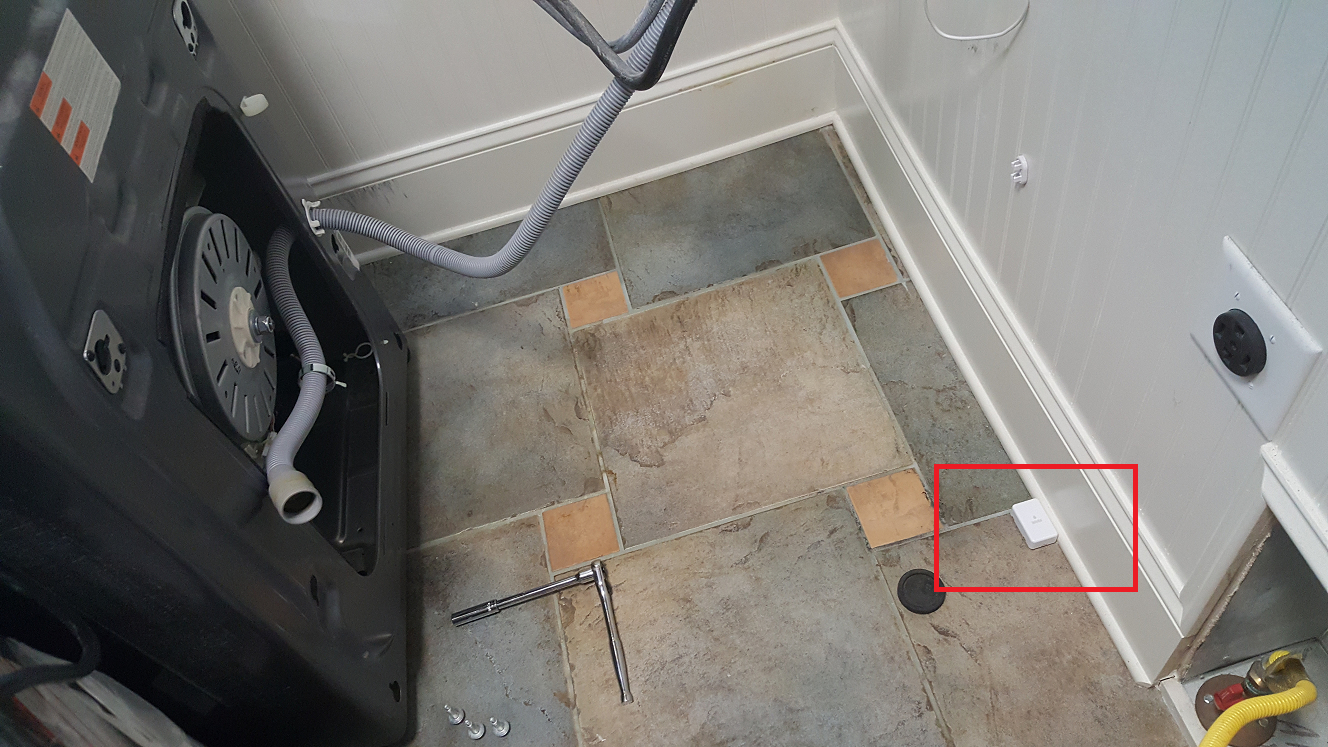 Why? Well because this little $25 leak sensor (in the red box) picked up water on my laundry room floor, and automatically shut off the valve and turned off the clothes washer that’s plugged into a zigbee outlet: