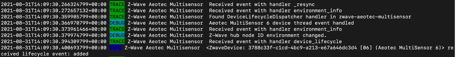 If your Device paired correctly and the Driver was applied, you should not see any errors in the logs. You can validate this by opening the SmartThings app and controlling and/or viewing all of the devices Capabilities (e.g., motion or change the temperature).