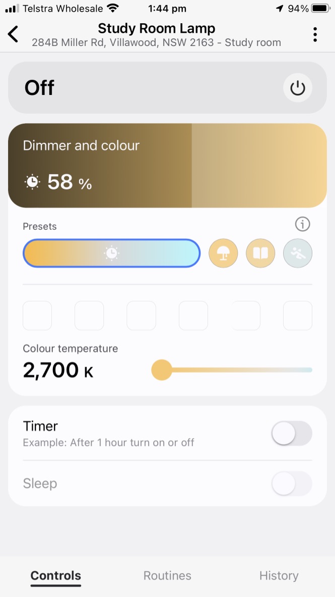 Yes, I can control the color and dimmer level. In this case, it’s the 3rd Reality Smart Nightlight using 3rd Reality’s driver. But, I see similar behavior for other devices like Eve Energy outlets and my Z-Wave dimmers/switches.