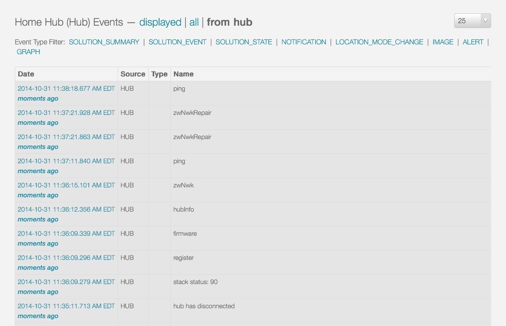Open a hub event log window. This is the same window that opens if you click on the log link that shows up in the IDE right after you begin a z-wave network repair. Clear the field in the upper right called Name Filter. Now you will see all hub events, which should include Ping every 5 minutes and any messages from the z-wave network repair, such as a device not responding. Bookmark this page, so you can open it before you start the repair (start the repair from a different tab), and see everything that goes on. Be sure to clear Name Filter to see all hub messages.